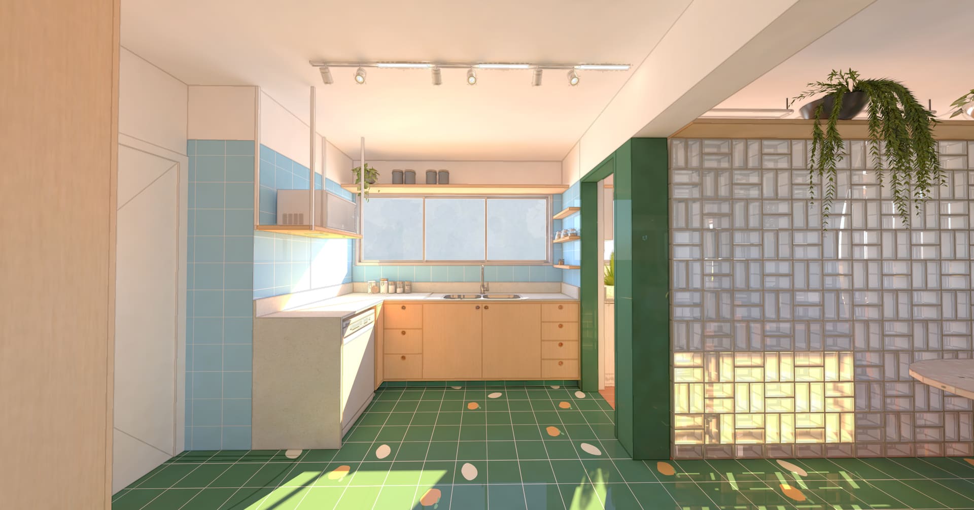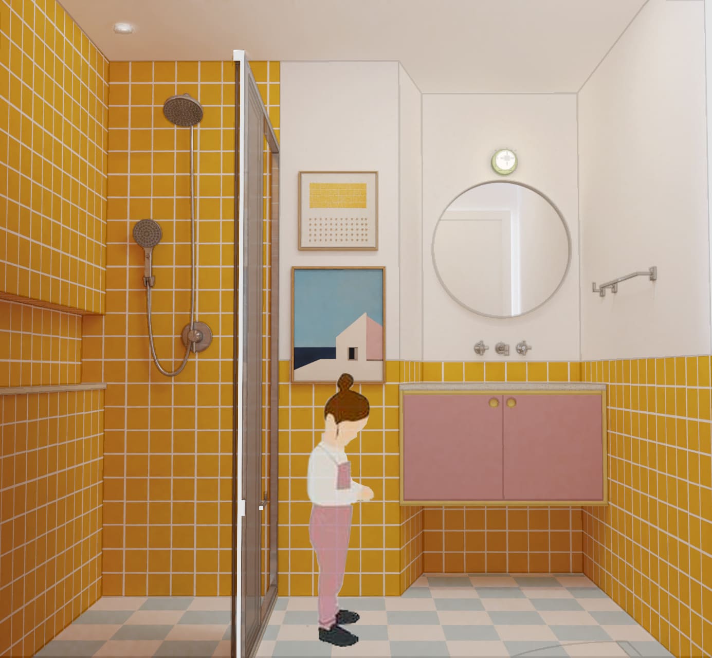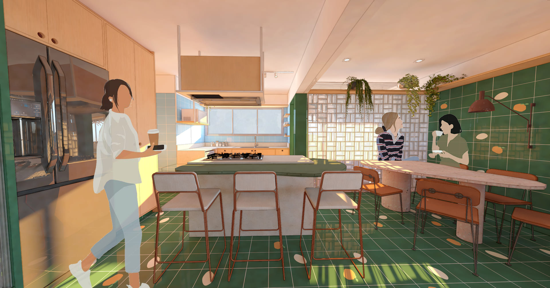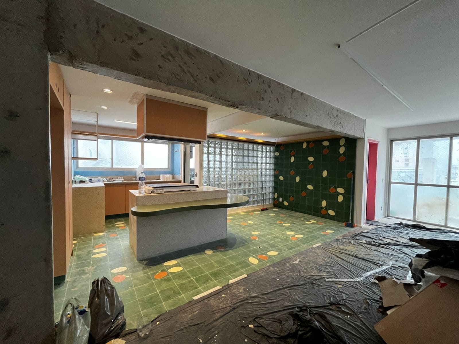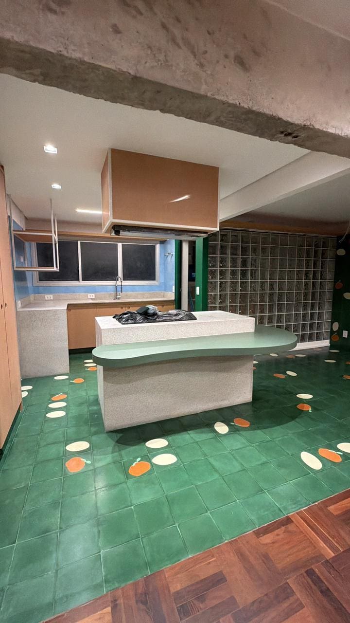 Nosso objetivo foi valorizar os pontos fortes de sua composição abrindo a cozinha para a sala e ampliando ainda mais a area social do apartamento. Trouxemos cores marcantes para cada um dos ambientes e investimos no uso de materiais da época, como o ladrilho hidraulico na cozinha, o tijolo de vidro da divisão entre lavanderia e sala de jantar e também o granilite na saída da sala para a varanda.