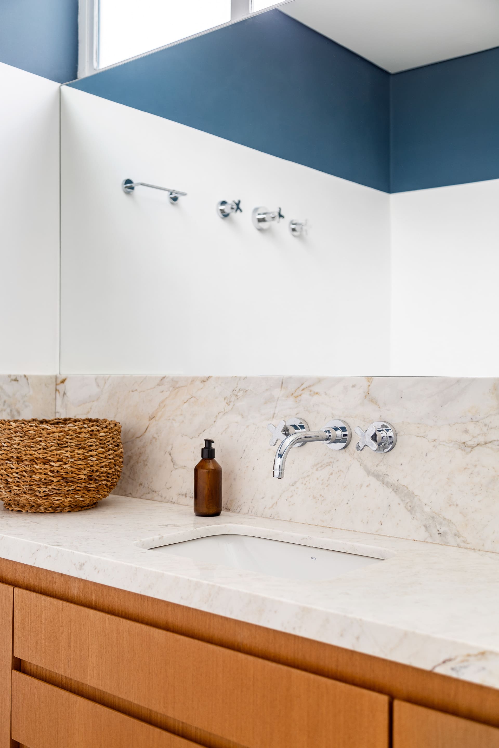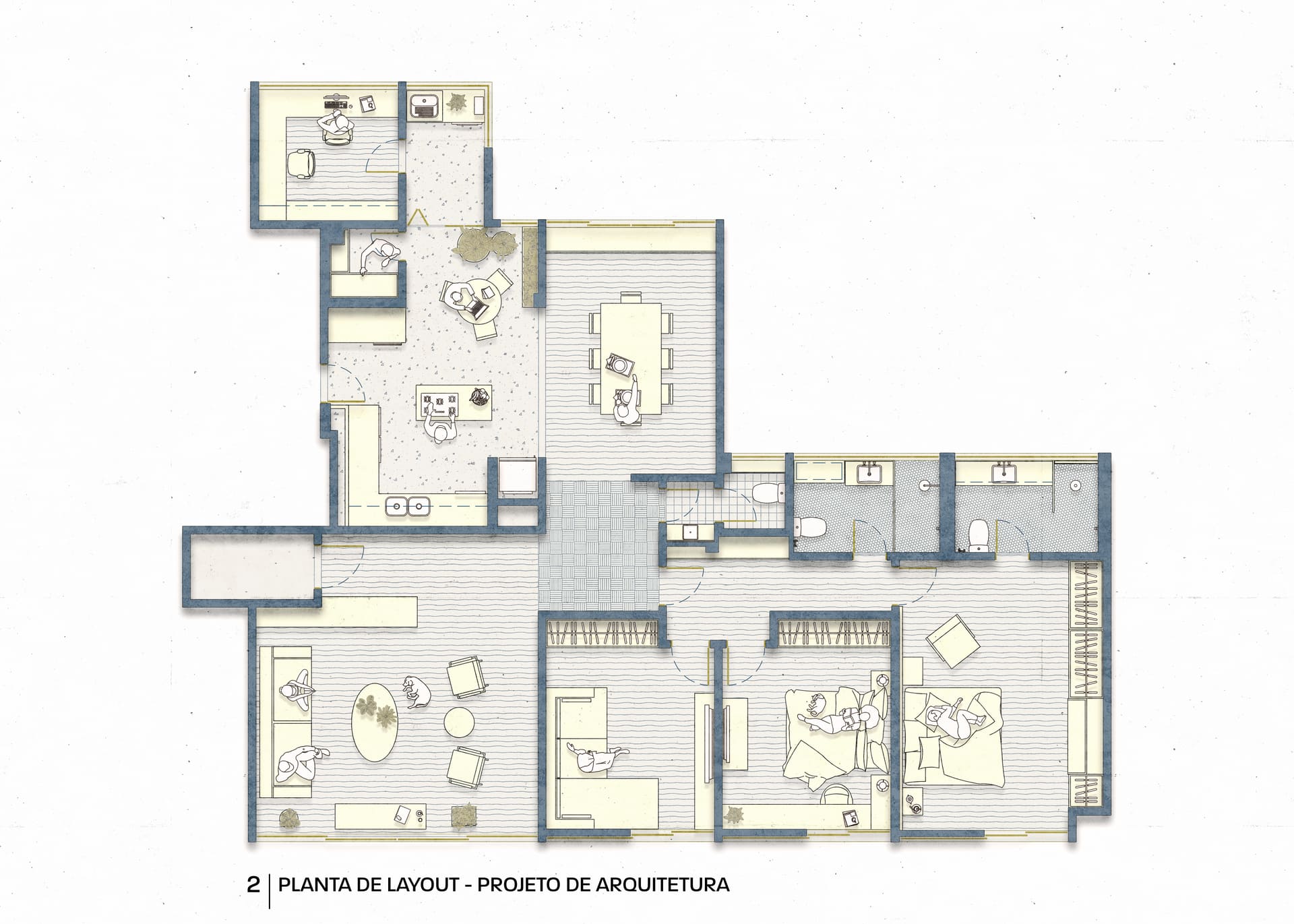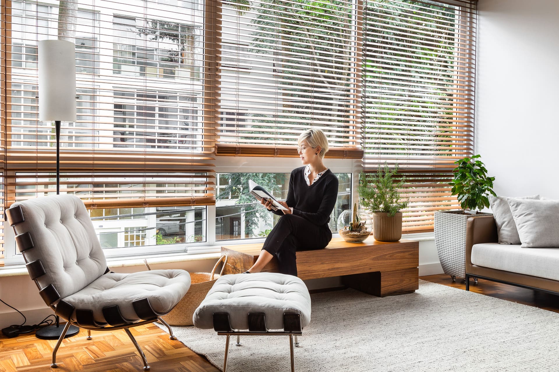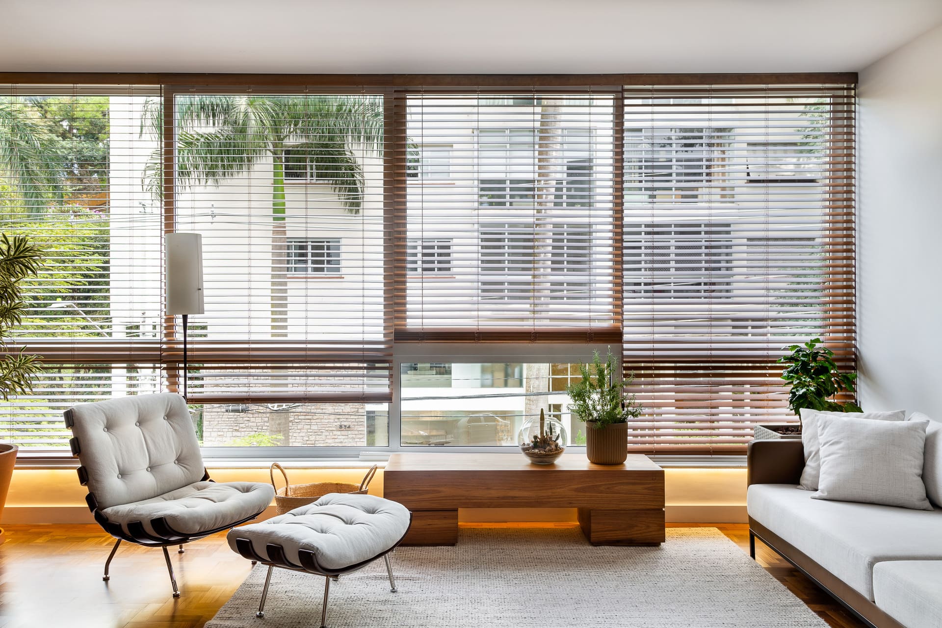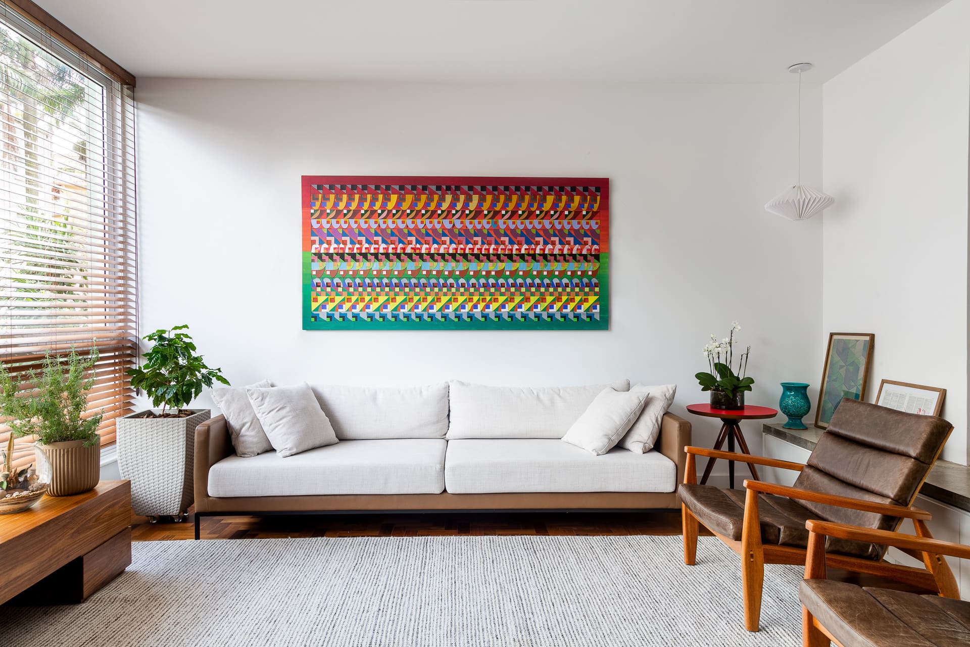 A sala de estar manteve-se sem televisão, seu espaço é dedicado à leitura e à conversa com ampla iluminação natural. Na área intima os dormitórios receberam revisão de elétrica, iluminação, pintura, instalação de ar condicionado e marcenaria totalmente nova. Os banheiros foram atualizados com revestimentos, louças e metais novos.